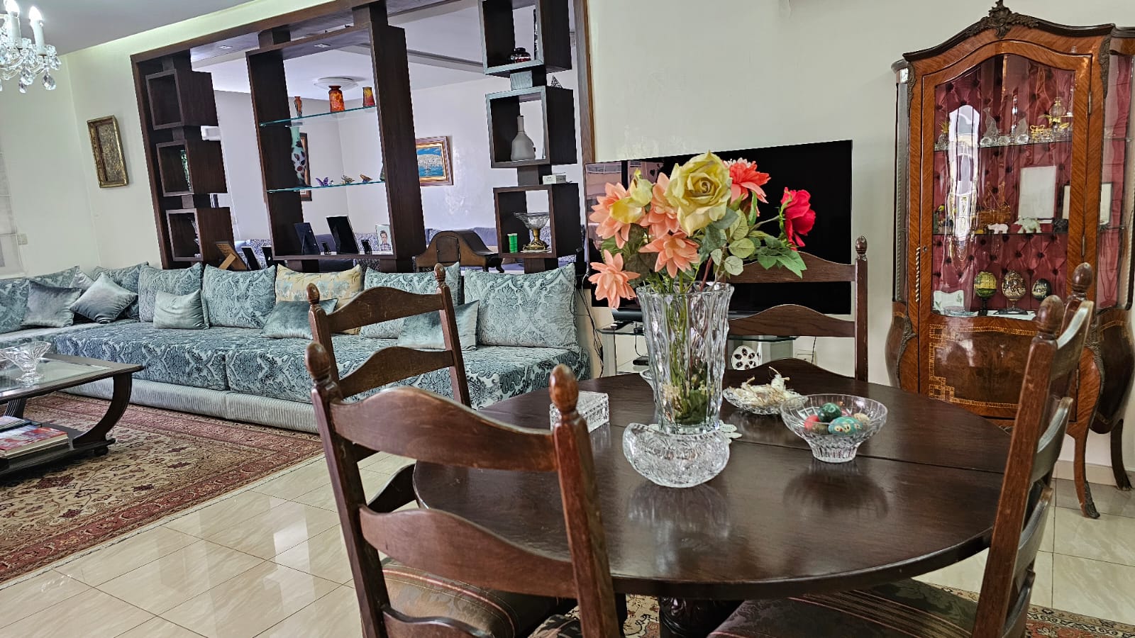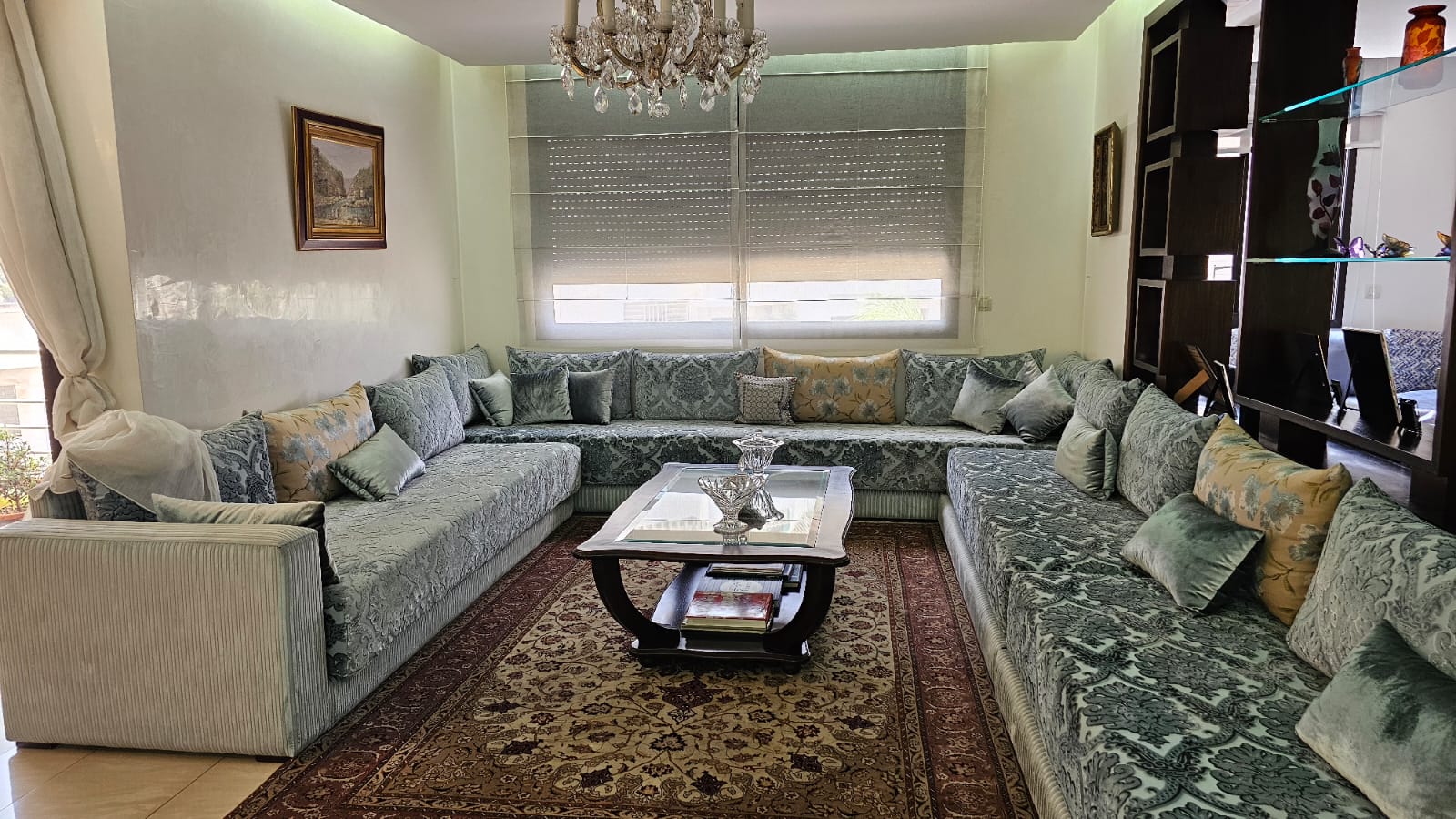 Haut Agdal un appartement à usage de bureau à louer à sur une superficie de 256 m² en 2 ème étage se composant d’une grande réception ouverte, un séjour, lave main invités, une cuisine , 4 chambres à coucher, une salle de bain, climatisation, rideaux électrique, deux place au garage et box.