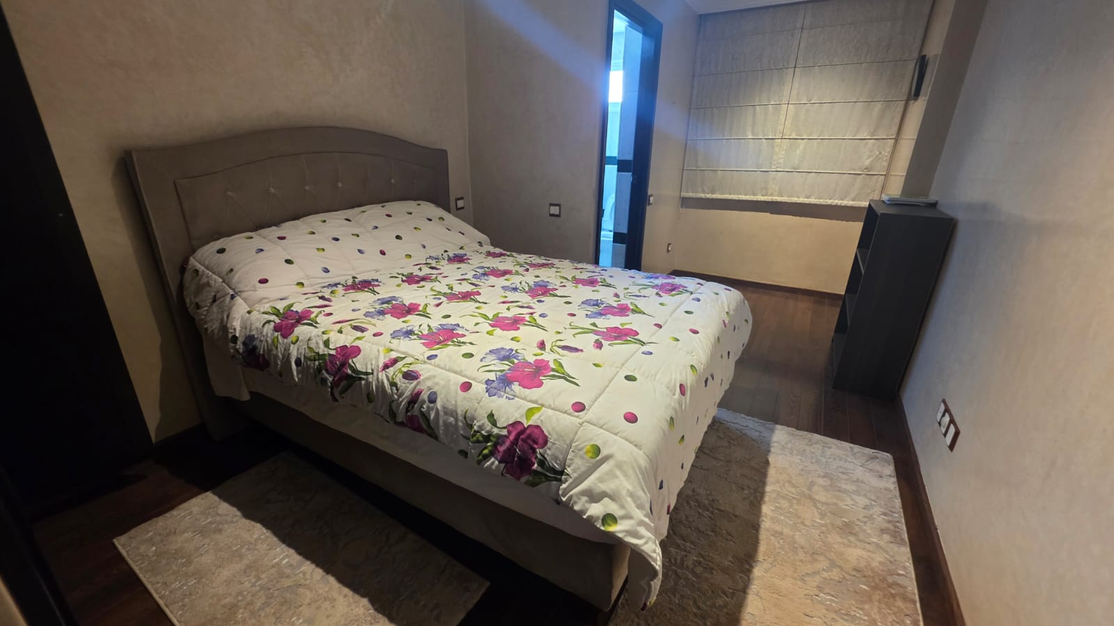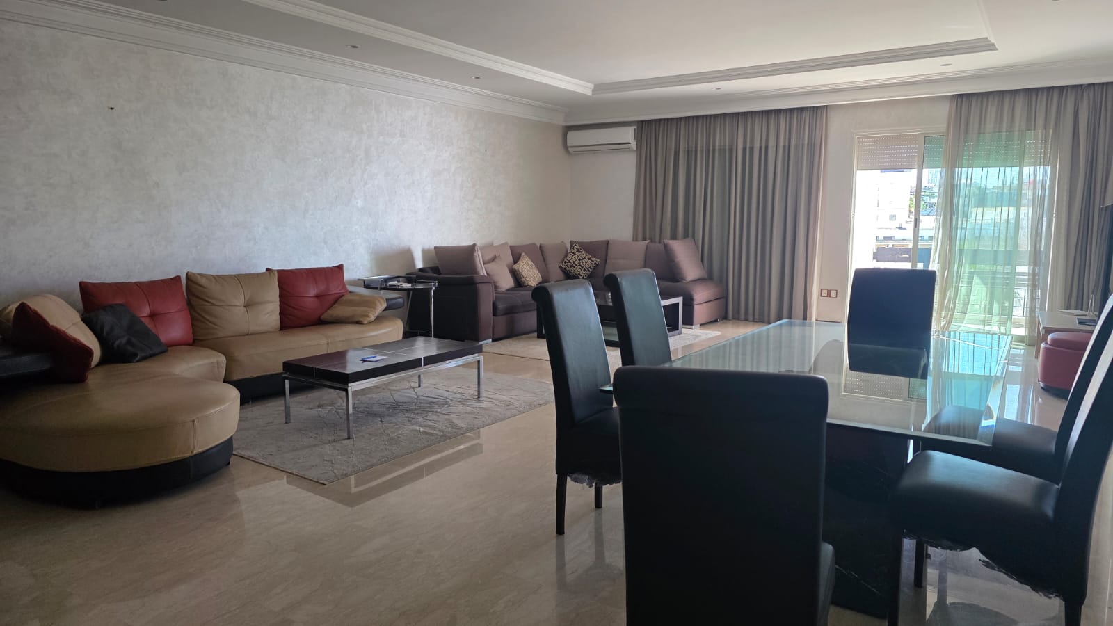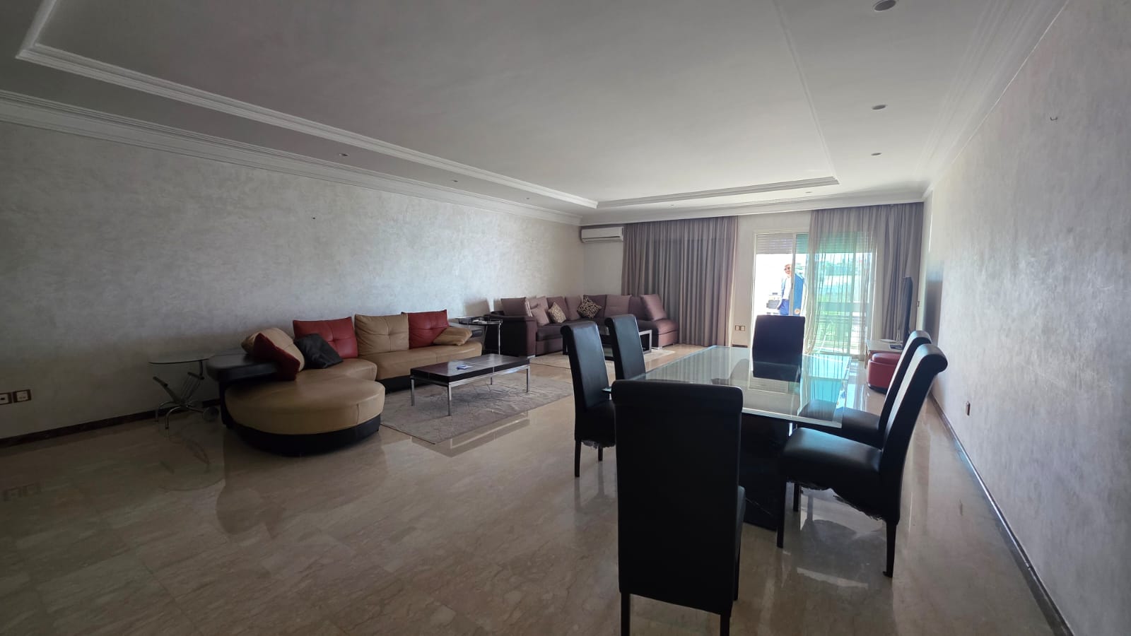Haut Agdal un bel appartement meublé de standing en location situé au 3ème étage d’un immeuble bien entretenu, sur une superficie de 160 m² se composant d’une grande réception ouverte avec coin cheminée, une chambre parents avec dressing et salle de bain, une chambre d’enfants, une salle de bain, toilette et lave mains invités, une grande cuisine, climatisation, balcon, ascenseur et deux place au garage.