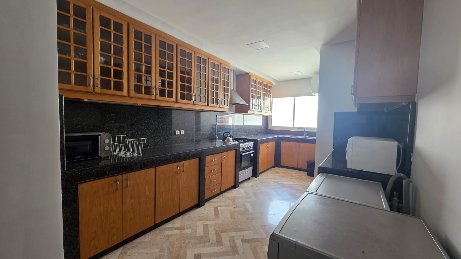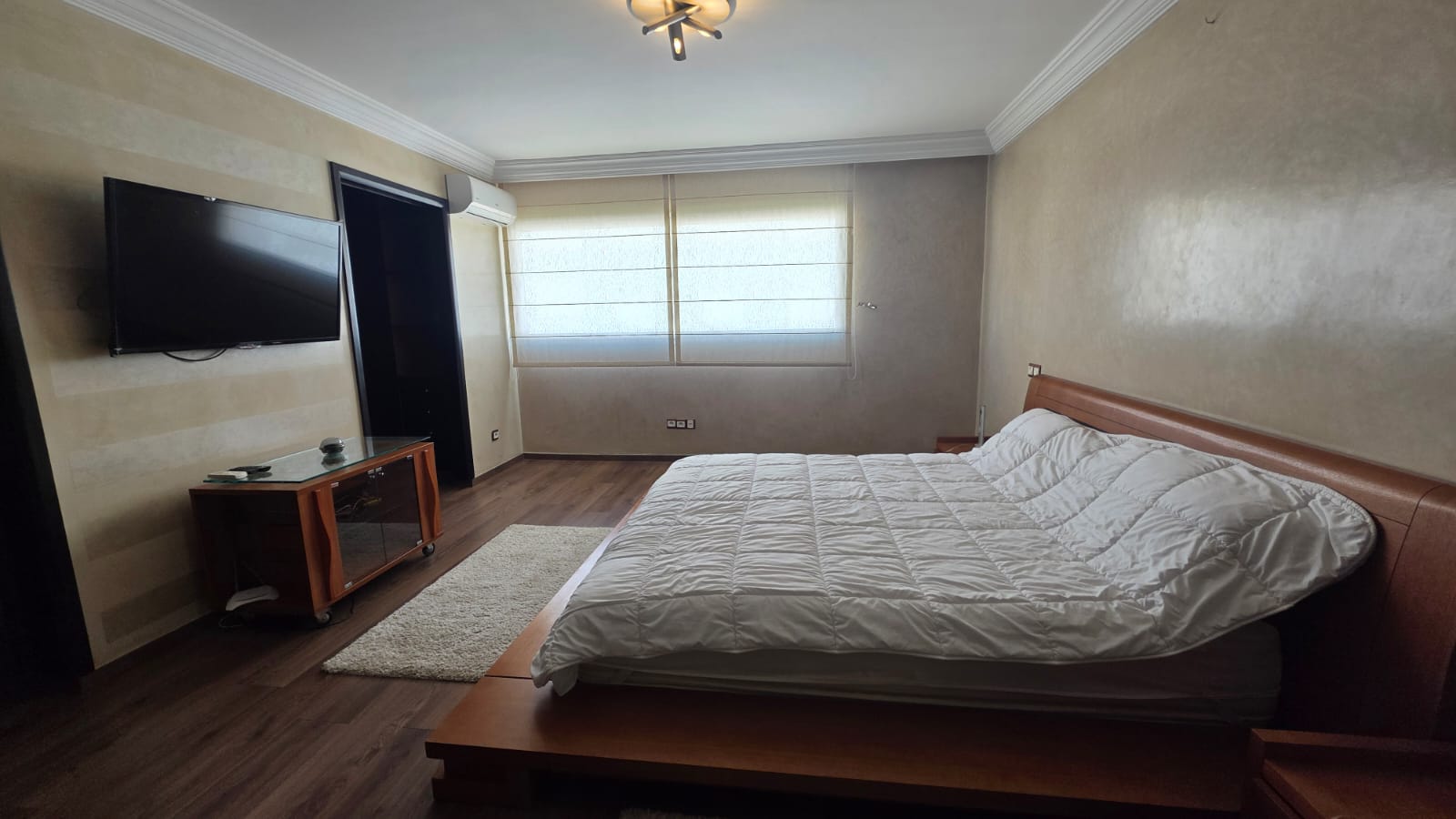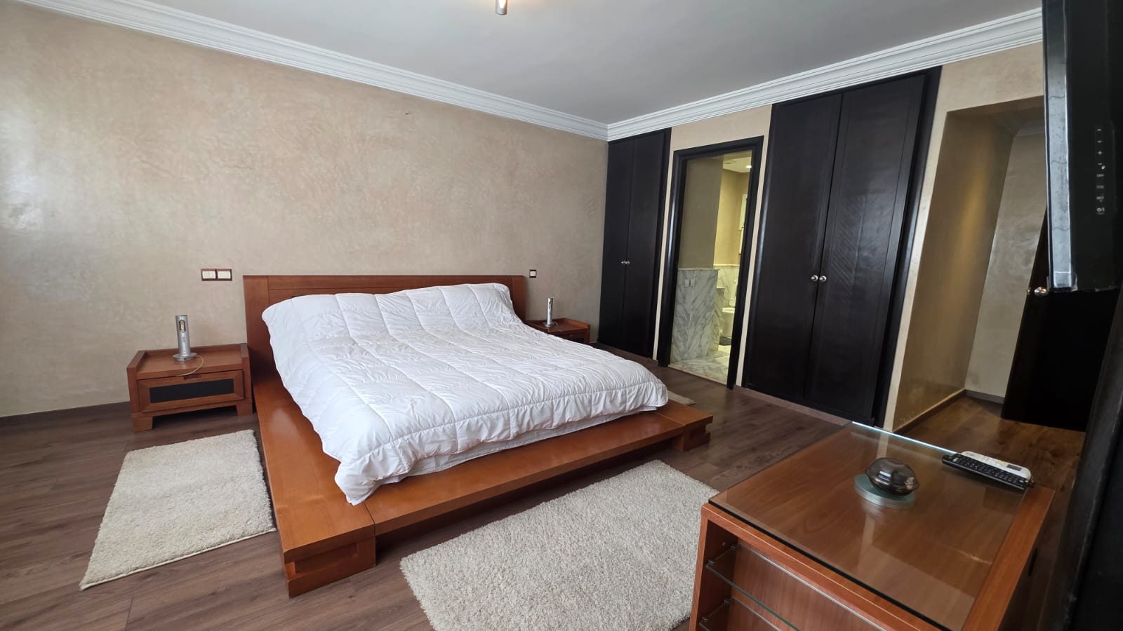Haut Agdal un bel appartement meublé de standing en location situé au 3ème étage d’un immeuble bien entretenu, sur une superficie de 160 m² se composant d’une grande réception ouverte avec coin cheminée, une chambre parents avec dressing et salle de bain, une chambre d’enfants, une salle de bain, toilette et lave mains invités, une grande cuisine, climatisation, balcon, ascenseur et deux place au garage.