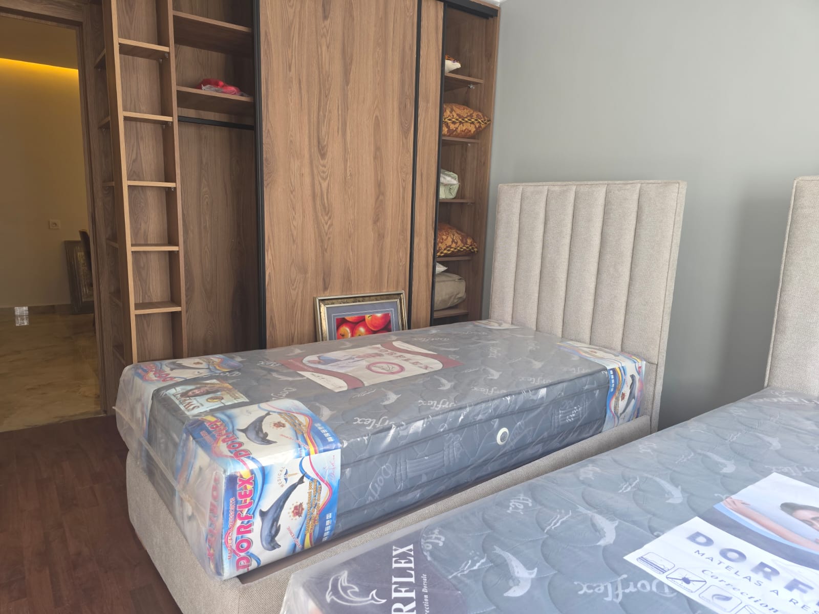 plein centre d’agdal un appartement meublé combine le confort et la modernité de au 2 ème étage sur une superficie de 90 m² se composant d’un salon avec l’habillage en bois, deux chambres à coucher, une cuisine équipée, un coin salle à manger, une salle de bain, une climatisation, un ascenseur et place au garage.