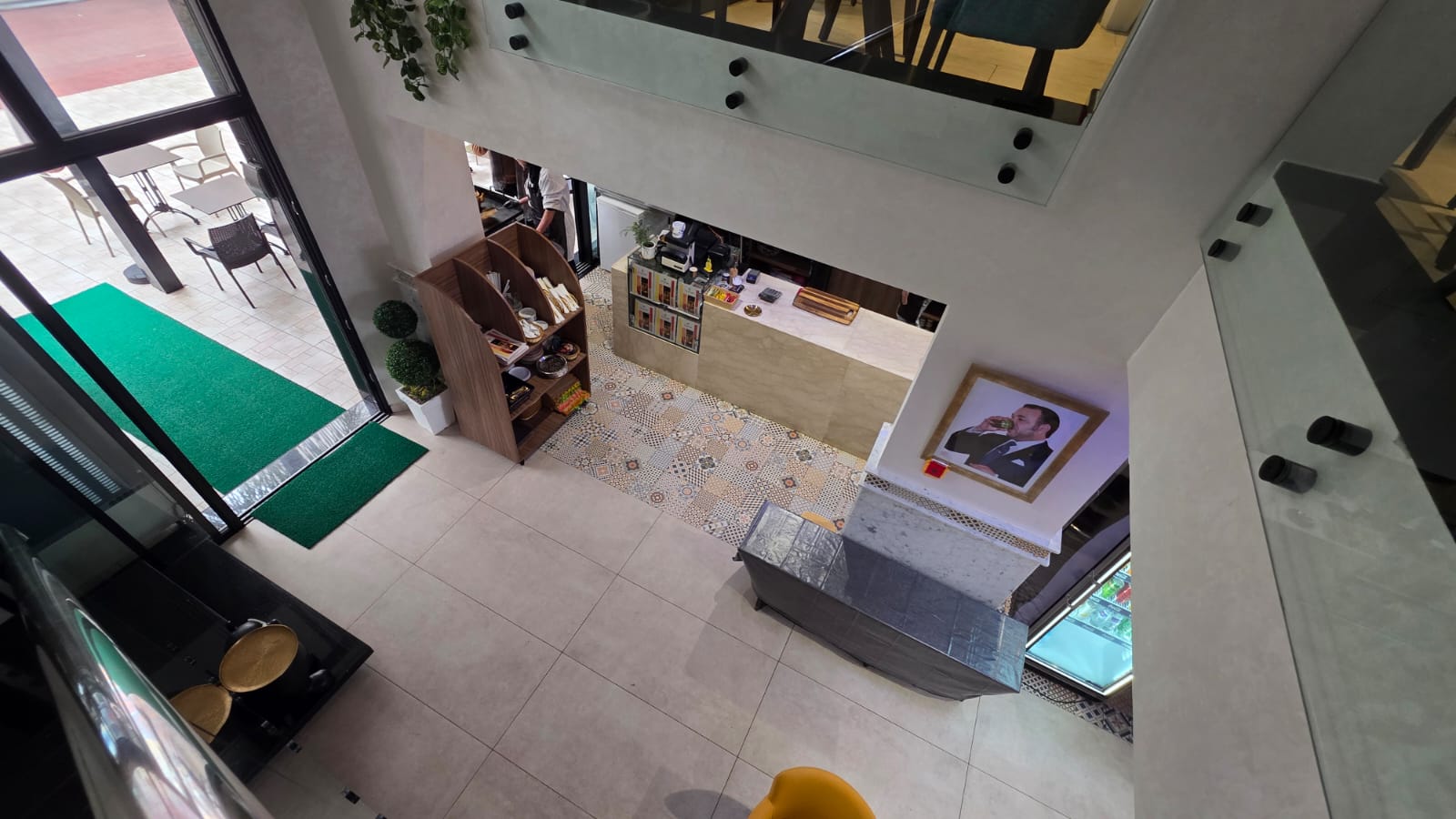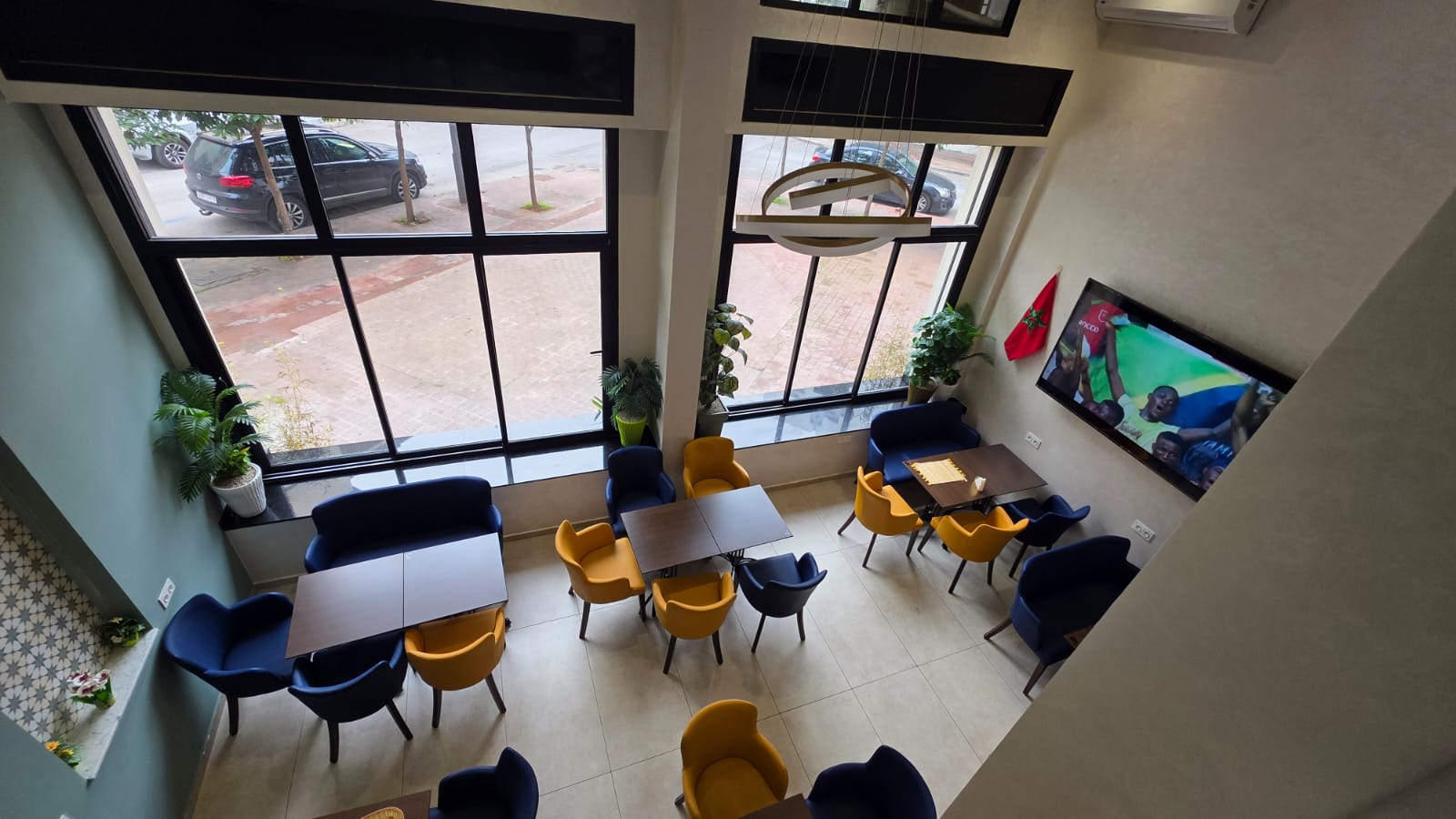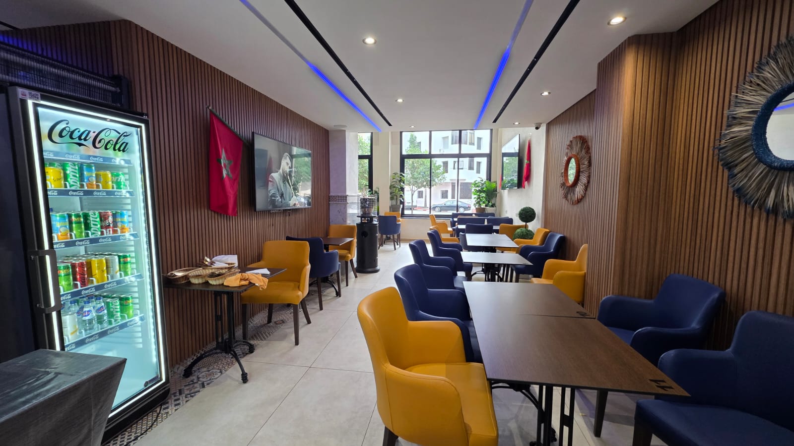 Hay Riad un Café restaurant en activité à vendre fonds et murs , bénéficiant d’un excellent chiffre d’affaires Superficie : 104 m² + 36 m² de mezzanine.