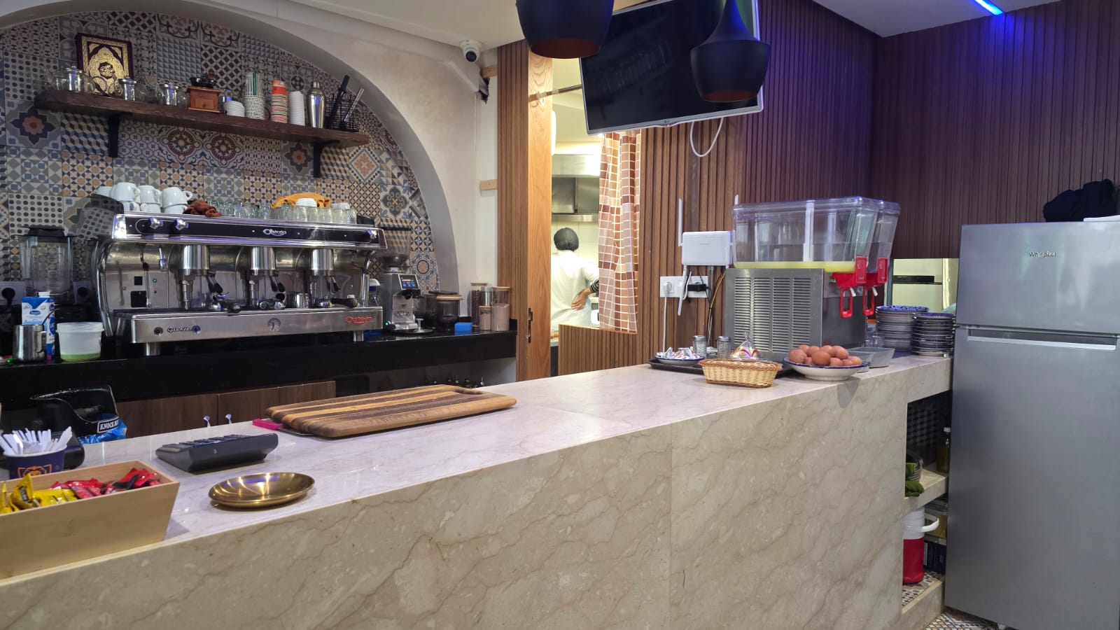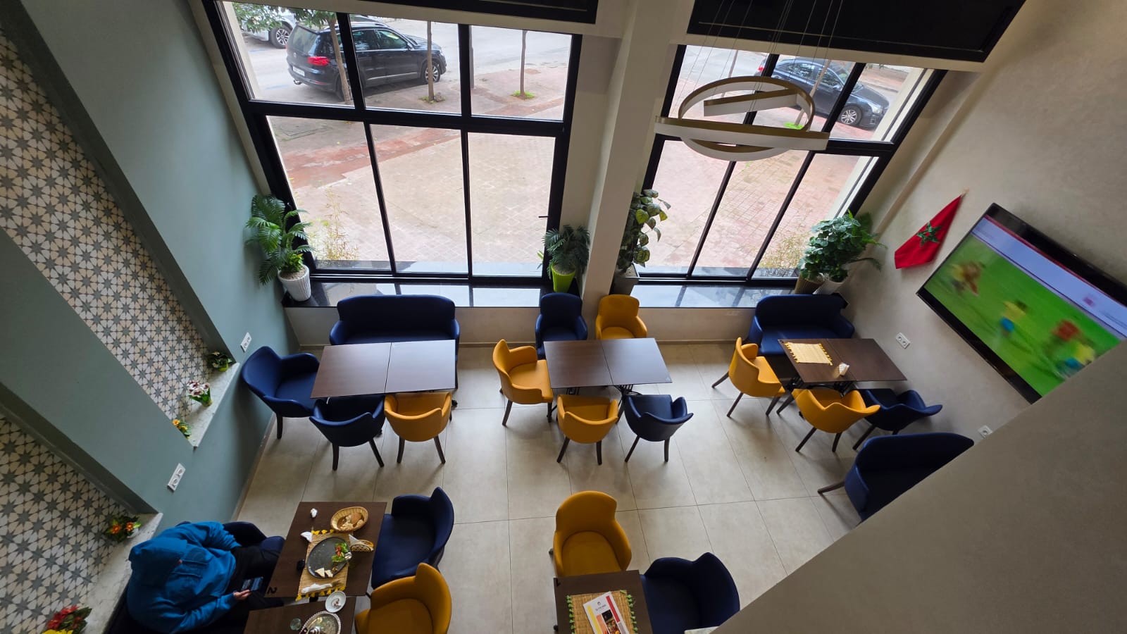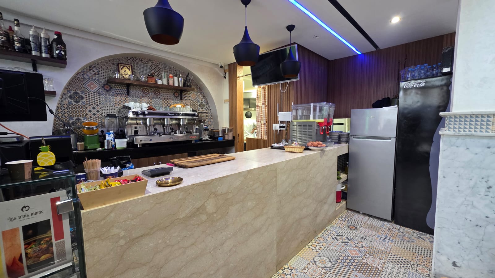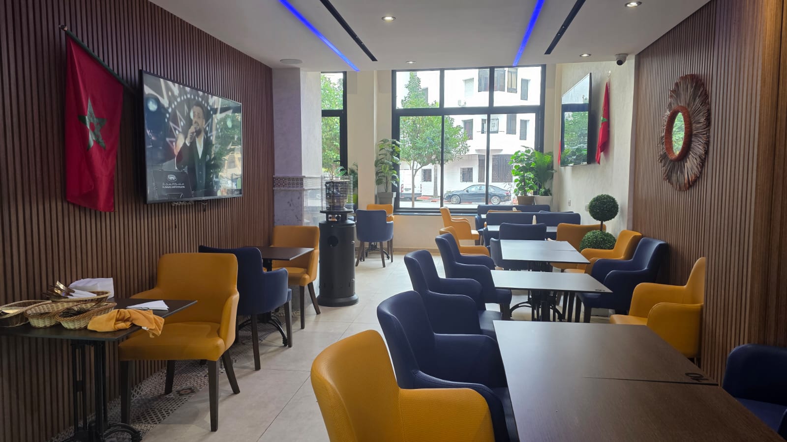 Hay Riad un Café restaurant en activité à vendre fonds et murs , bénéficiant d’un excellent chiffre d’affaires Superficie : 104 m² + 36 m² de mezzanine.