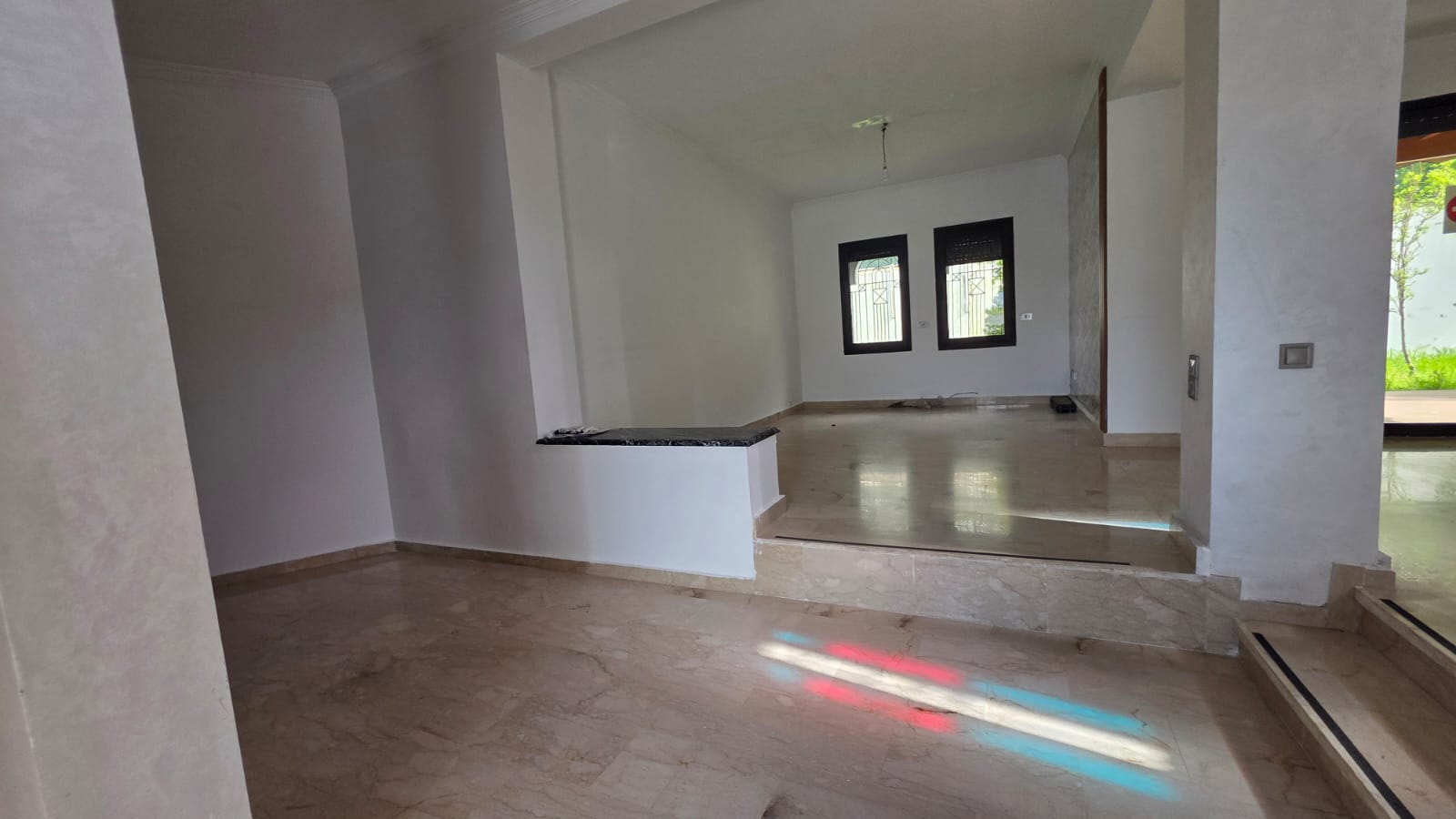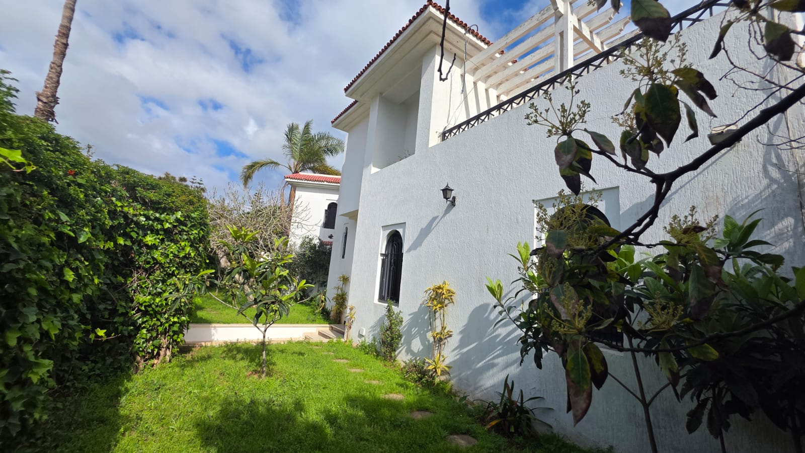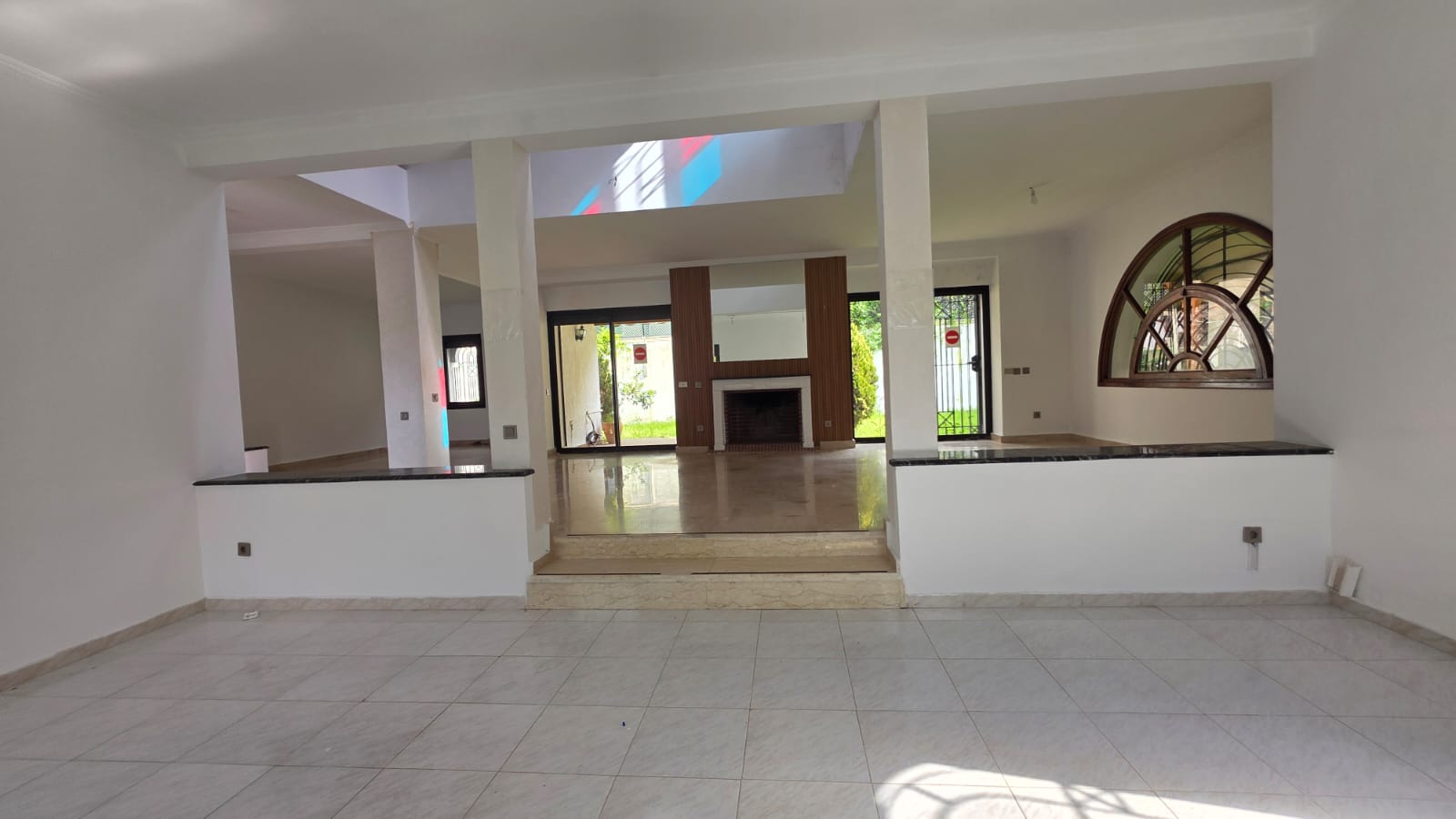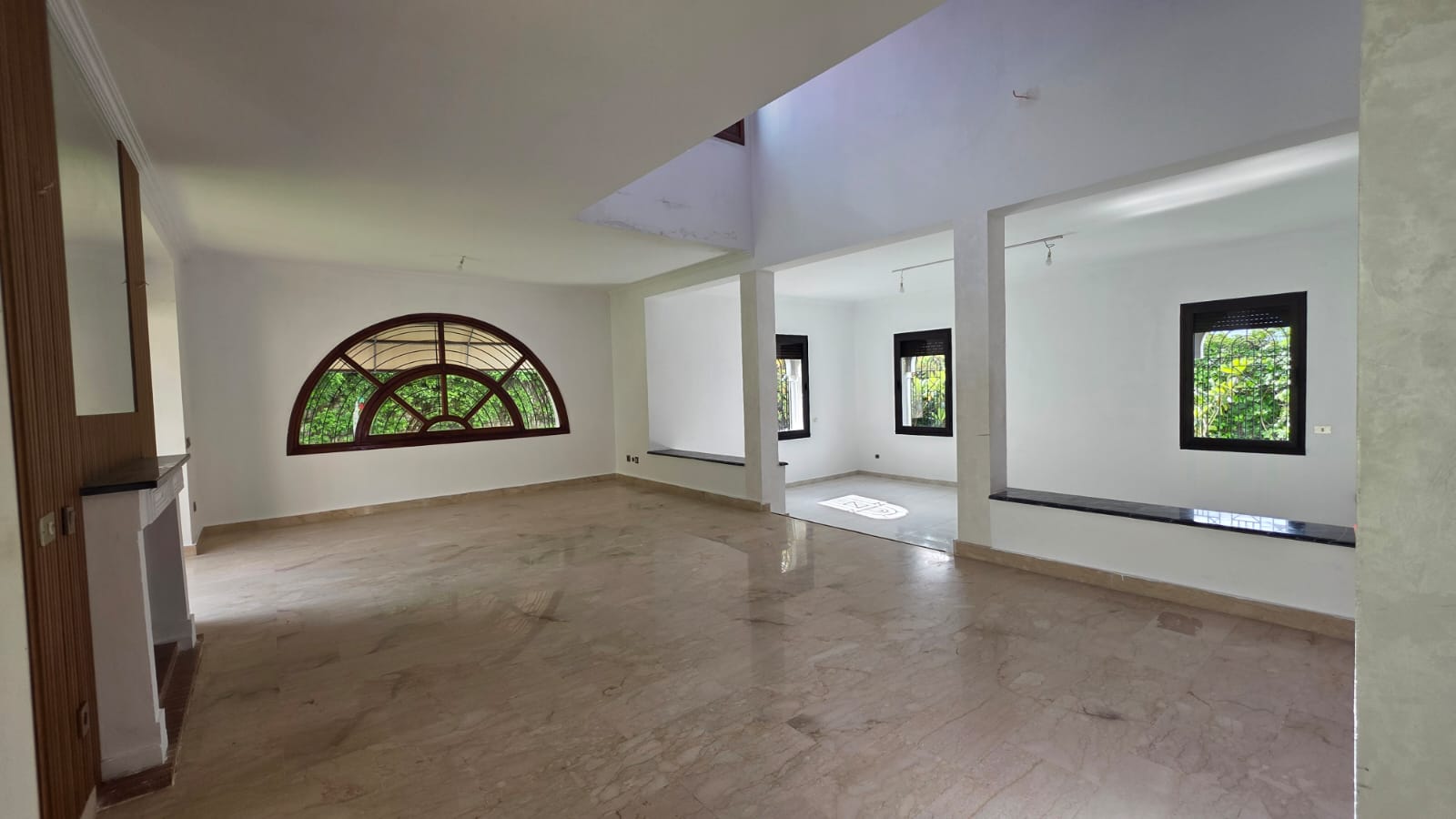 RDC: 1 chambres, trois salons, terrasse sur jardin, deux salles de bain, deux dépendances pour le personnel au jardin avec Salle de bain, et garage