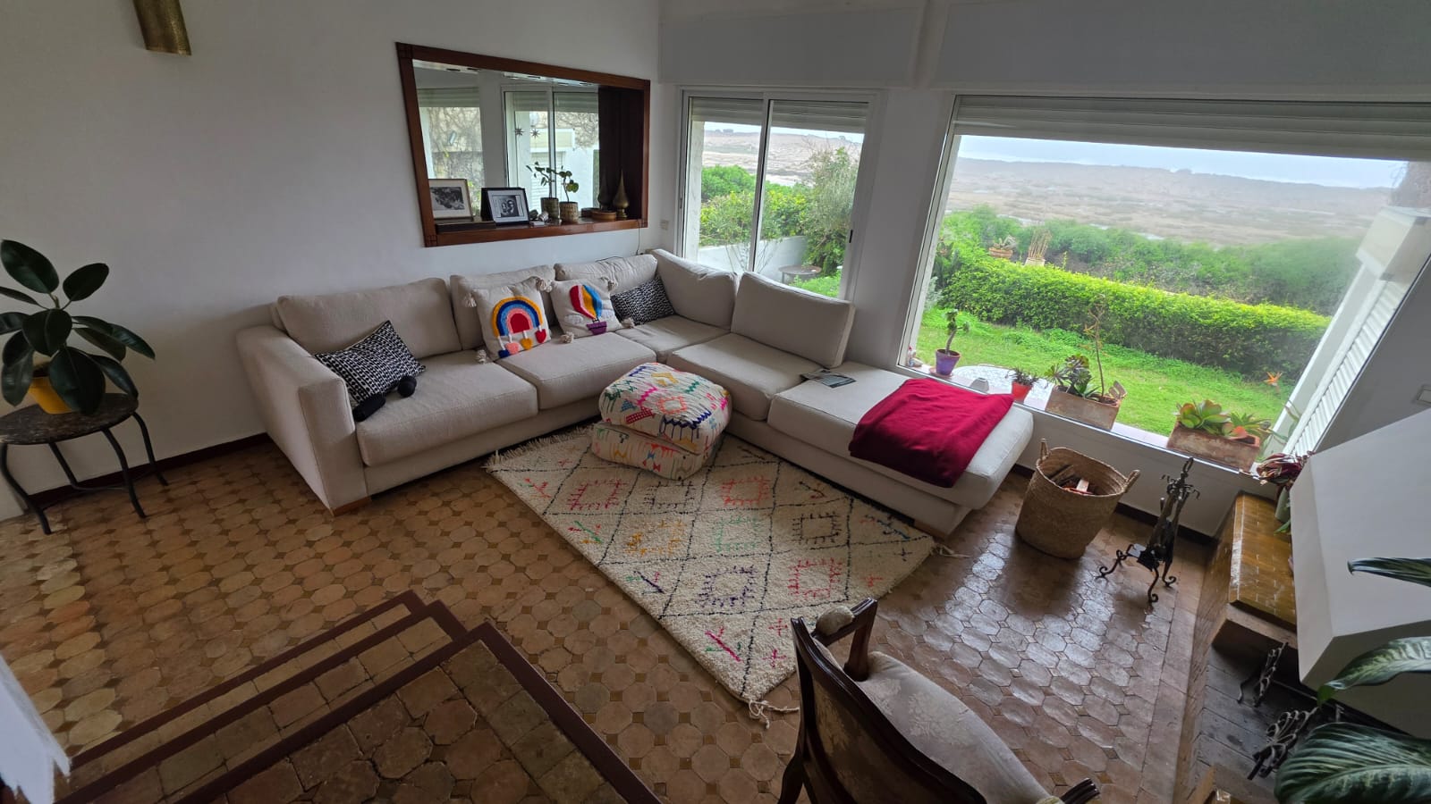 Harhoura villa meublé à louer avec une vue sur l’océan d’une superficie de 600 m2 de terrain et 350 construite sur deux niveaux, se composant d’un salon, un séjour, un espace salle à manger, 3 chambres à coucher, un dressing, 2 salles de bain, une cuisine équipés, et un jardin.
